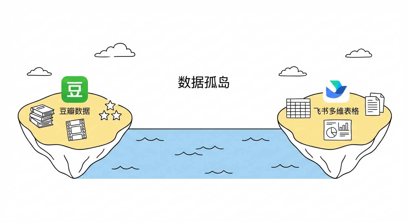 豆瓣数据像座孤岛,飞书多维表格又是另一片天地。想把数据搬过去,要么手动一条条录,要么靠插件。