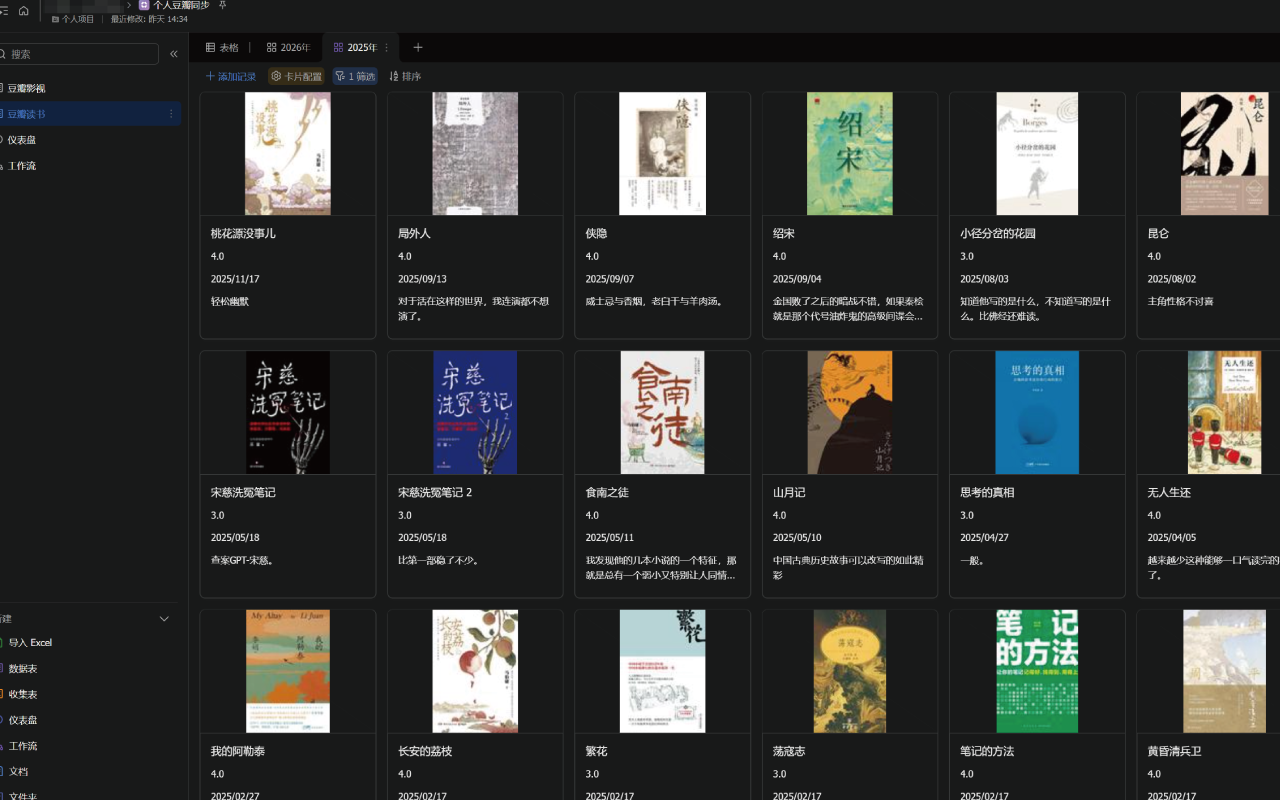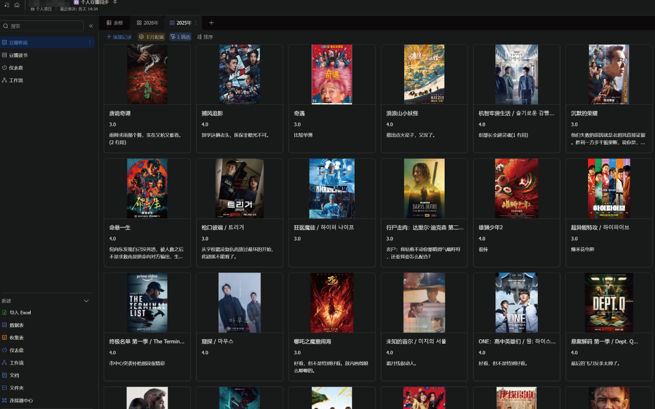 数据全部迁移完成,飞书表格里躺着几百条书影音记录。回头看,这趟折腾虽然累,但成果还是热气腾腾。