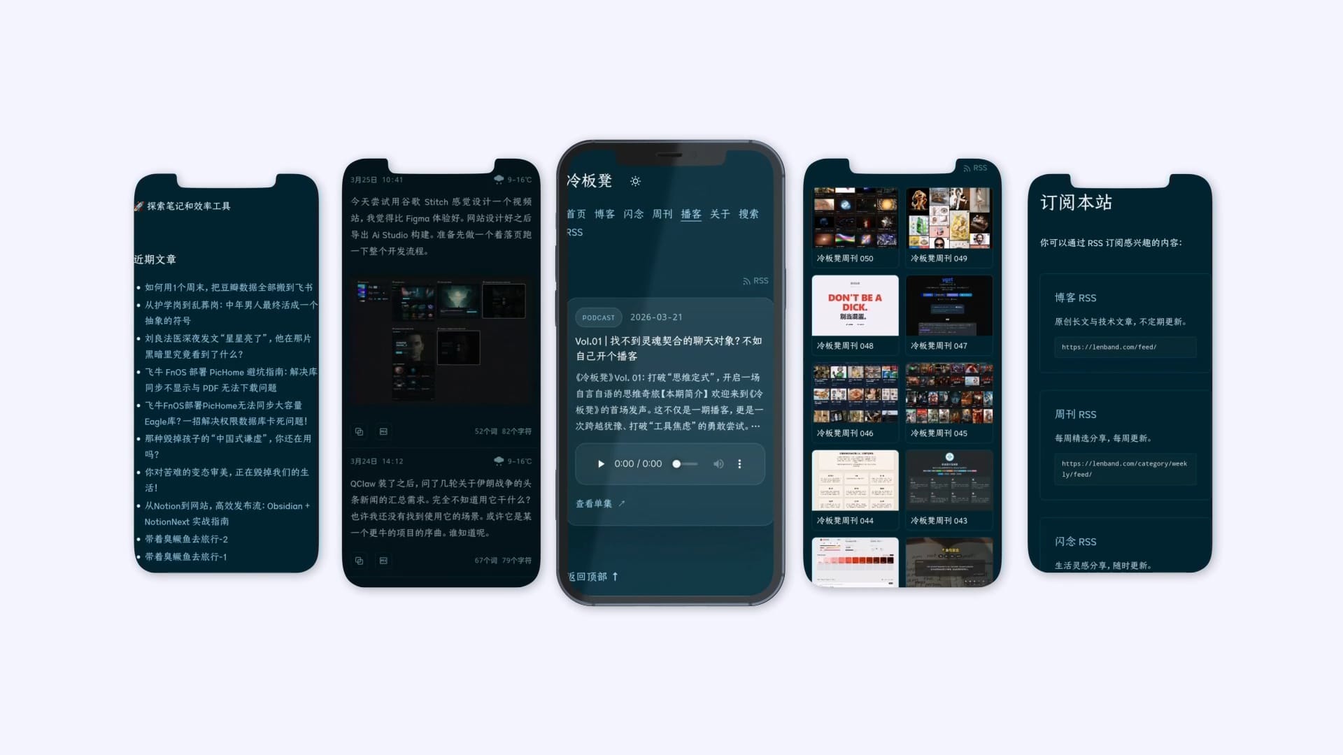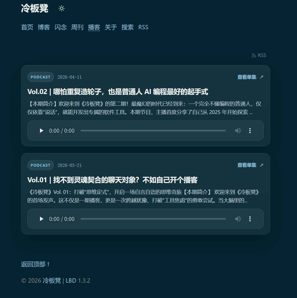 要有播客页面,你完全不用考虑如何上传音频到网站,它会全自动同步小宇宙播客到个人网站的播客页面。极简小卡片设计,沉浸式播客体验。让冷板凳温暖的声音陪伴你走过每一个春夏秋冬。